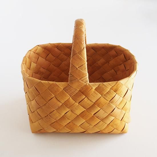 フィンランドから届いた白樺の樹皮を使って編んだGarinaさんのハンドルバスケットです。
