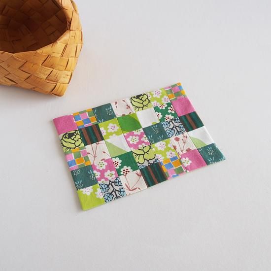 パッチワークの表布と無地の裏布のみの軽い仕様はコースターやマット、目隠しカバーなどににお使いいただけます。
