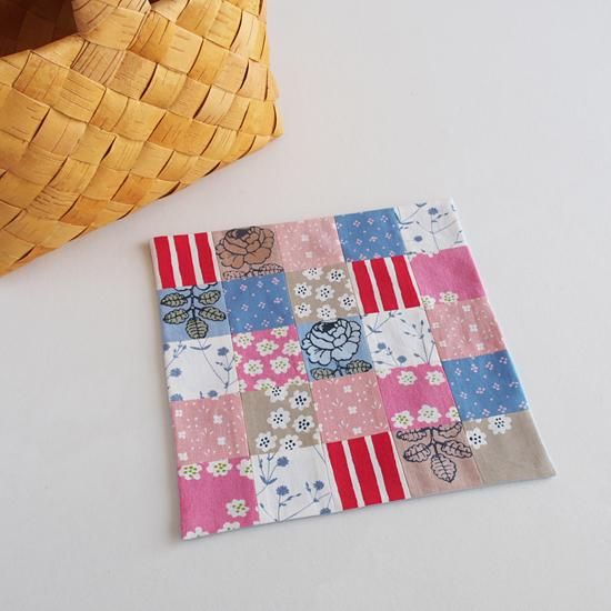 パッチワークの表布と無地の裏布のみの軽い仕様はランチマット、マットや目隠しカバーなどににお使いいただけます。