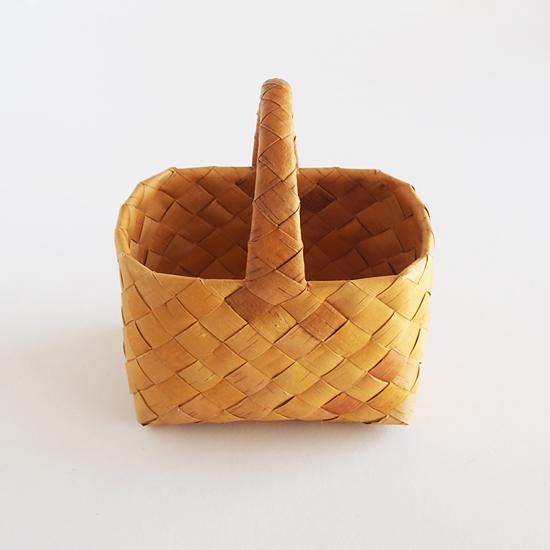 フィンランドから届いた白樺の樹皮を使って編んだGarinaさんのハンドルバスケットです。