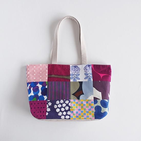 マリメッコのヴィンテージ、廃盤布などを使い、3×4のパッッチワークで作ったバッグです。