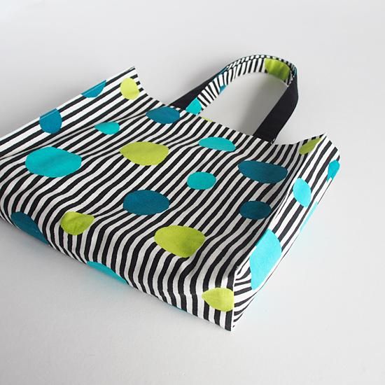 ハンドペイントのようなストライプに大小のドット柄が爽やかで北欧テイスト漂うショルダーバッグです。