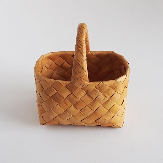 フィンランドから届いた白樺の樹皮を使って編んだGarinaさんのハンドルバスケットです。