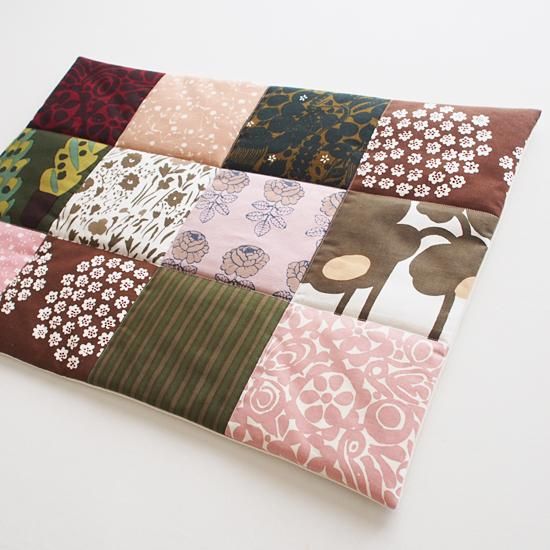 マリメッコのヴィンテージ、廃番布などを使い、3×4のパッチワークで作ったフロアマットです。