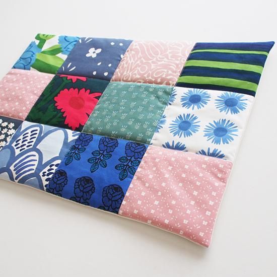 マリメッコのヴィンテージ、廃番布などを使い、3×4のパッチワークで作ったフロアマットです。