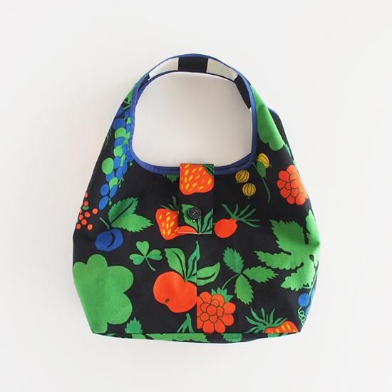 スウェーデンで見つけた1970年代の上質のコットンファブリックでワンハンドルのショルダーバッグを作りました。