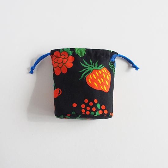 □ 商品名:北欧ヴィンテージコットンの丸底巾着/ブラック×グリーン