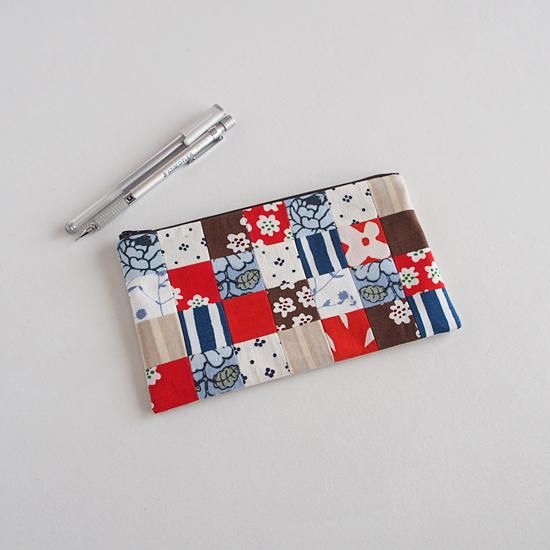 マリメッコのヴィンテージ布、廃番布パターンを使用して作ったパッチワークのファスナーケースです。