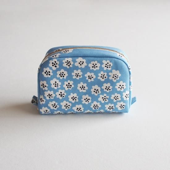 マリメッコのPuketti(ブーケ)パターンの廃番未使用のソフトキャンバスを使って作ったマチ付きファスナーポーチです。