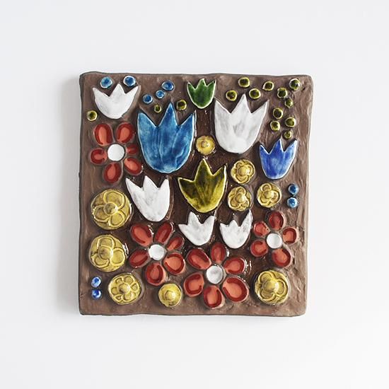 スウェーデン、Jie Gantofta窯のフラワー壁掛け陶板です。