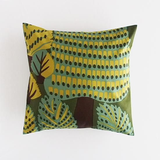 Kristina Isolaの作品のなかでも際立っていたパターン、Metsanvaki(メトサンヴァキ/森の住人)のモスグリーンで作ったクッションカバーです。
