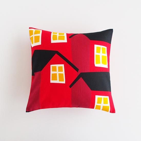 マリメッコの人気若手デザイナー、アイノ-マイヤ・メトソラによるデザインのMokki(コテージ)/レッドで作ったクッションカバーです。