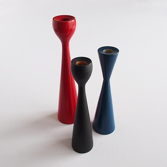 スウェーデンから届いた木製のカラーキャンドルスタンドです。