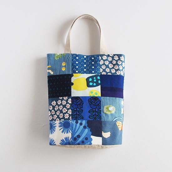 マリメッコのヴィンテージ布、廃盤布を使ってパッチワーク仕立てで作ったトートバッグです。
