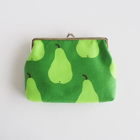 マリメッコの廃番パターン、Pieni Paarynaのグリーンで作ったガマ口ポーチです。