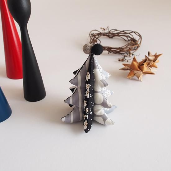 マリメッコのヴィンテージ布、廃番布を組み合わせて製作したクリスマスファブリックツリーです。