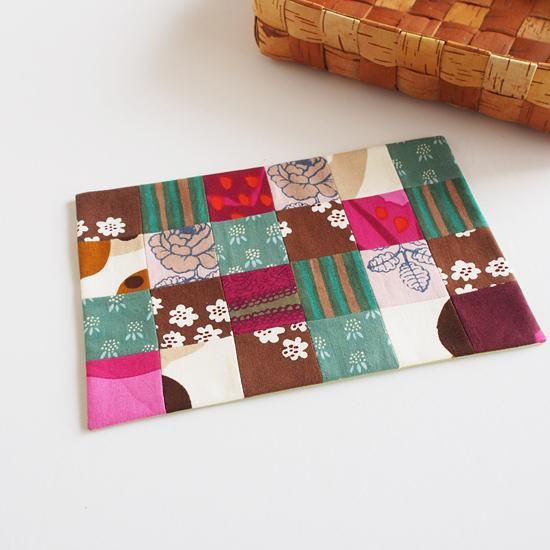 マリメッコのヴィンテージ布、廃盤布を使ってパッチワークのように合わせた17cm×25cmのフリーマットです。