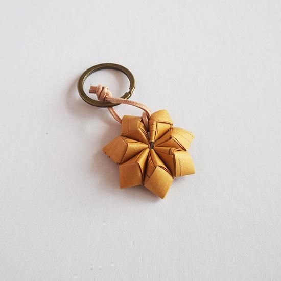 フィンランドから届いた白樺の樹皮を使って編んだGalinaさんの花のキーリングです。