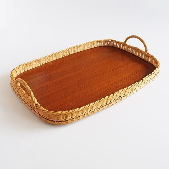 スウェーデンから届いた籐×チークトレイ/ハンドル付き