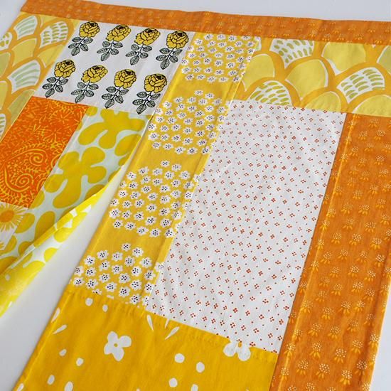 □ 商品名:北欧ファブリックのポジャギ風/パッチワークのれん/イエロー