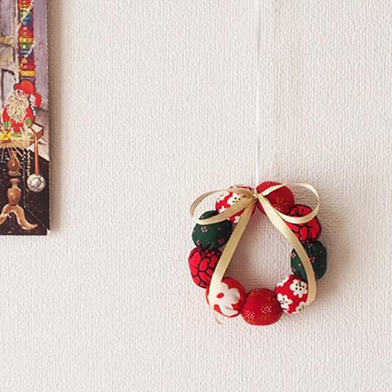マリメッコのヴィンテージ・廃番の布を組み合わせて作ったクリスマスカラーのリースです。
