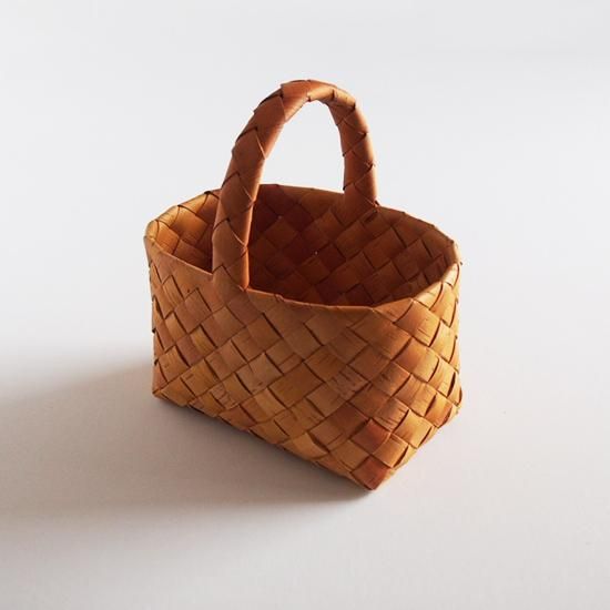 フィンランドから届いた白樺の樹皮を使って編んだハンドルバスケットです。