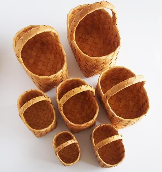 フィンランドから届いた白樺の樹皮を使って編んだハンドルバスケットです。