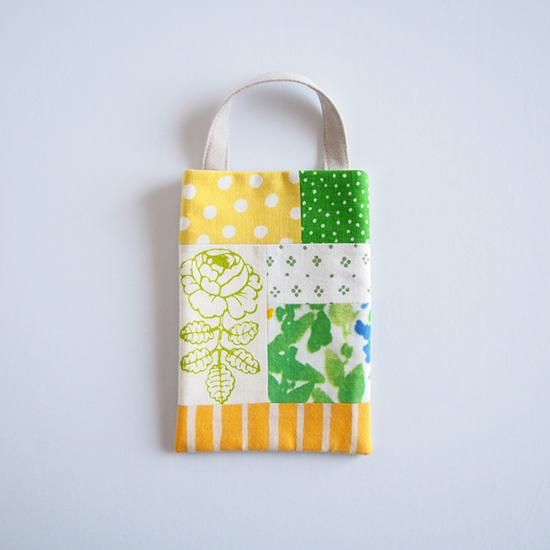 マリメッコ、Tampellaなど北欧のヴィンテージ布地のカットピースを組み合わせてスマホポーチを作りました。