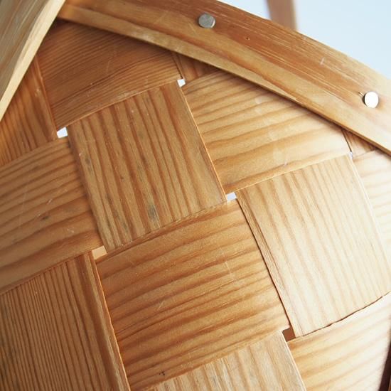 スウェーデンの伝統的な手工芸の一つで、職人さんが木目に沿って薄く切ったへぎ板を編み込んで作った丈夫なカゴです。