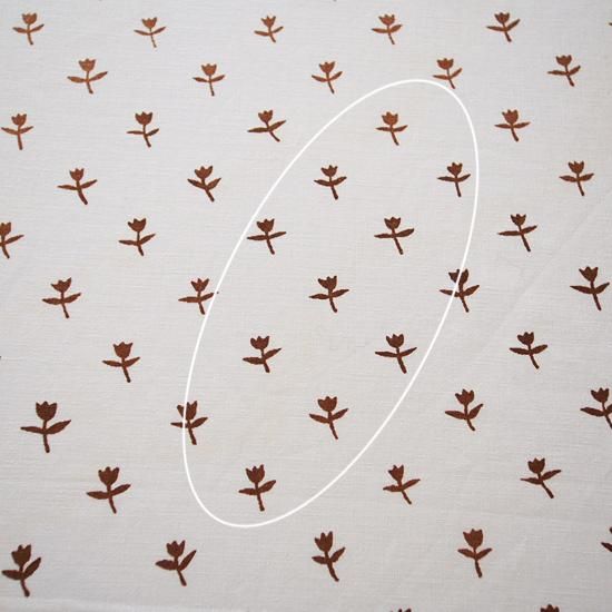 クリーム色の地に茶色の可愛らしいチューリップ柄は一見タンポポの種のようにも見え、ふわふわとただよっているような軽快な印象です。
