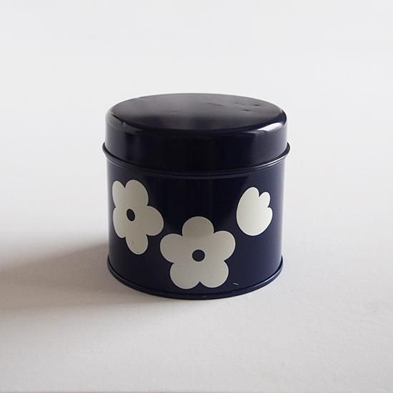 ポップでかわいい花柄とネイビーの組み合わせはブリキの缶のほか、コースターやトレイも作られ、時代を経て人気があります。
