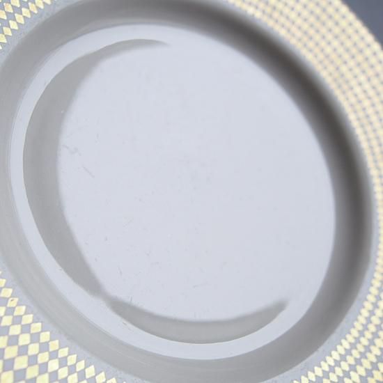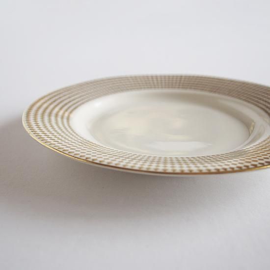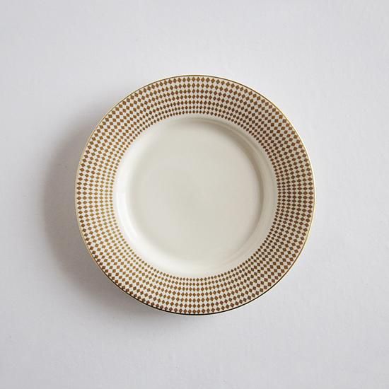 ダイヤ模様の金彩が外側に向かって大きくなっていく、動きが感じられる華やいだ雰囲気の上品なプレートです。