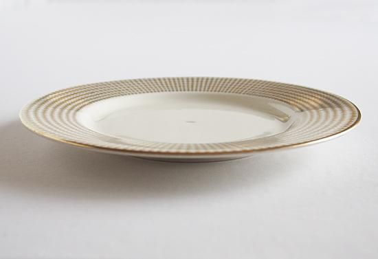 ダイヤ模様の金彩が外側に向かって大きくなっていく、動きが感じられる華やいだ雰囲気の上品なプレートです。