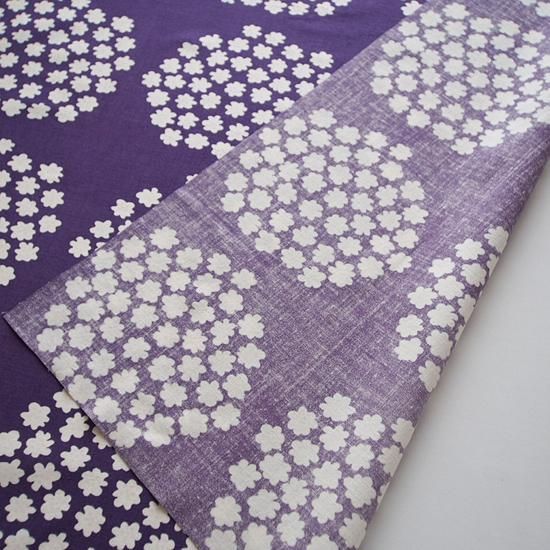 落ち着いた色のパープルに白い花びらと薄紫の雄しべ(ドット)が浮き出て華やかです。