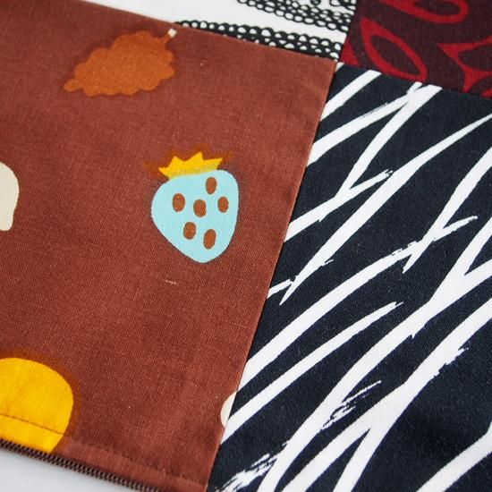 マリメッコの布の内側は中材の色が表に映らないよう白い布をはさんでいます。