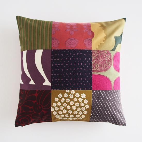 マリメッコのヴィンテージ布、廃番布を9パターン使用して作ったピースワーククッションカバーです。