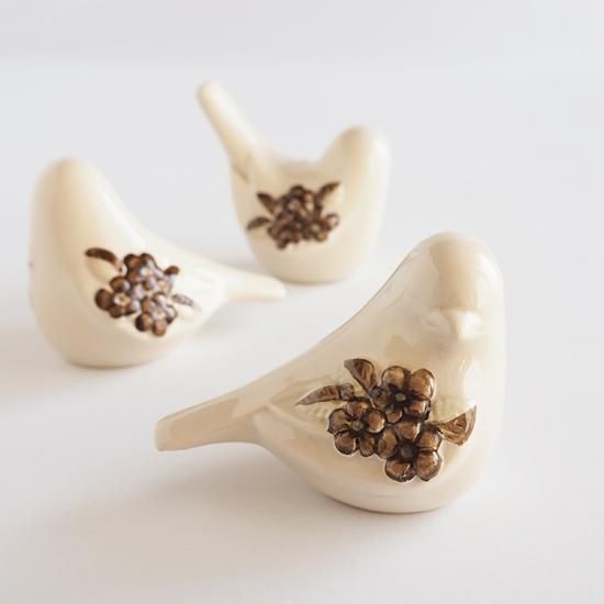 Deco/デコ Rosa Ljung 小鳥のオブジェ/クリーム×ブラウン