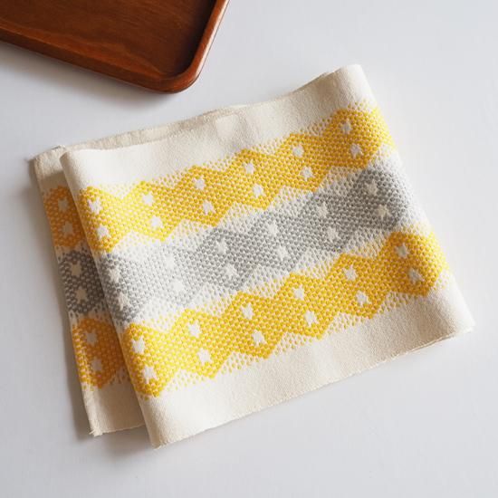 □ 商品名:スウェーデンから届いたイエロー&グレーの編み込みランナー 130×19
