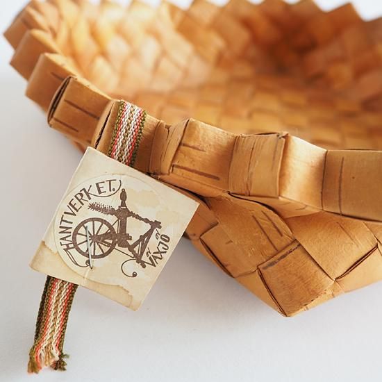 スウェーデンから届いた縁回りのギザギザがアクセントの白樺のかごです。