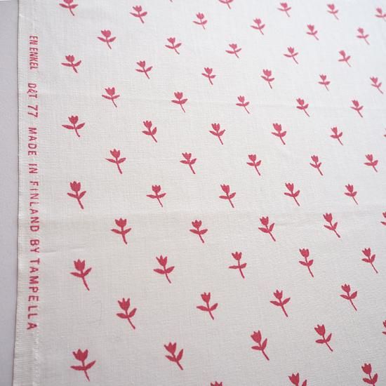 Tampella/タンペラ ヴィンテージファブリック/白にピンクのチューリップ 切売り