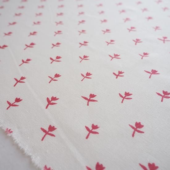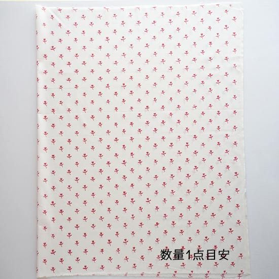 □ 商品名:Tampella/タンペラ ヴィンテージファブリック/白にピンクのチューリップ 切売り