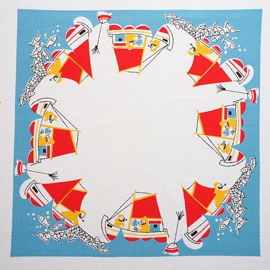 スウェーデンから届いた漁師モチーフのプリントクロス 87×89