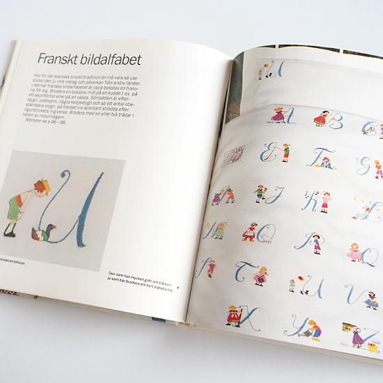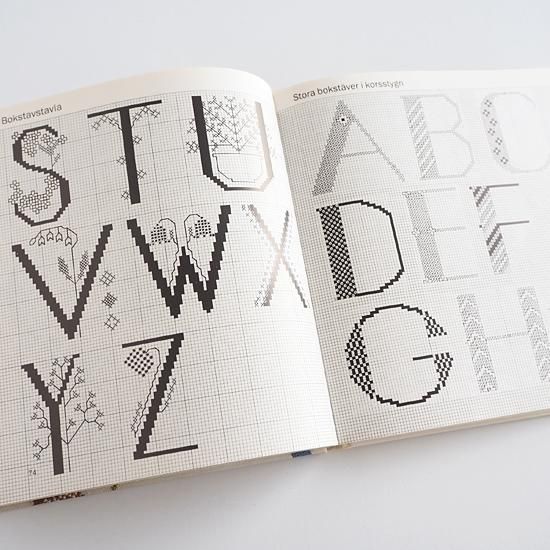 華やかで可愛らしい様々なパターンのアルファベットの図案をメインに収められたスウェーデンの刺繍図案集です。