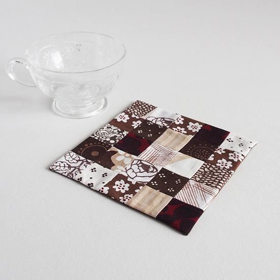 パッチワークの表布と無地の裏布のみの軽い仕様はコースターやマット、目隠しカバーなどににお使いいただけます。