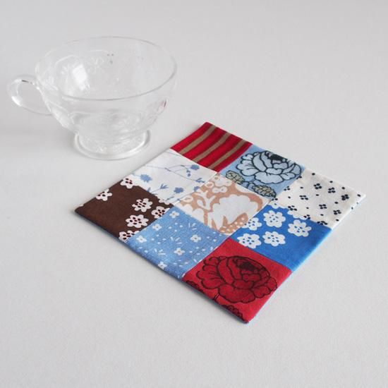 パッチワークの表布と無地の裏布のみの軽い仕様はコースターやマット、目隠しカバーなどににお使いいただけます。